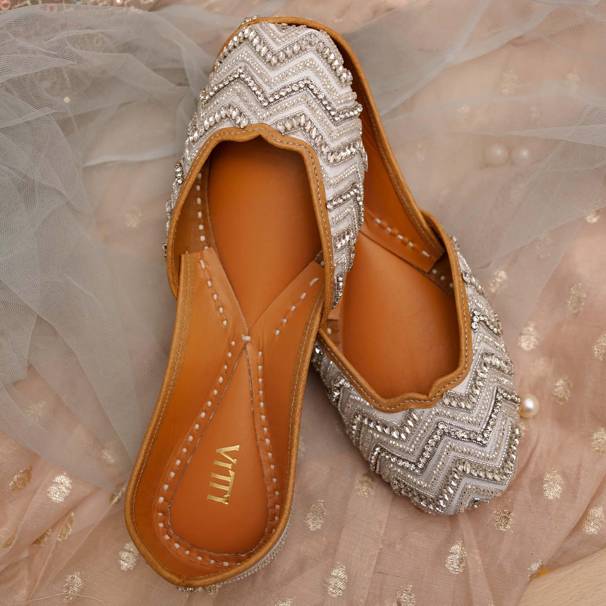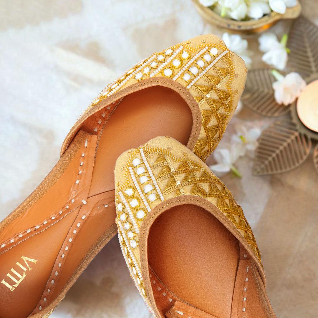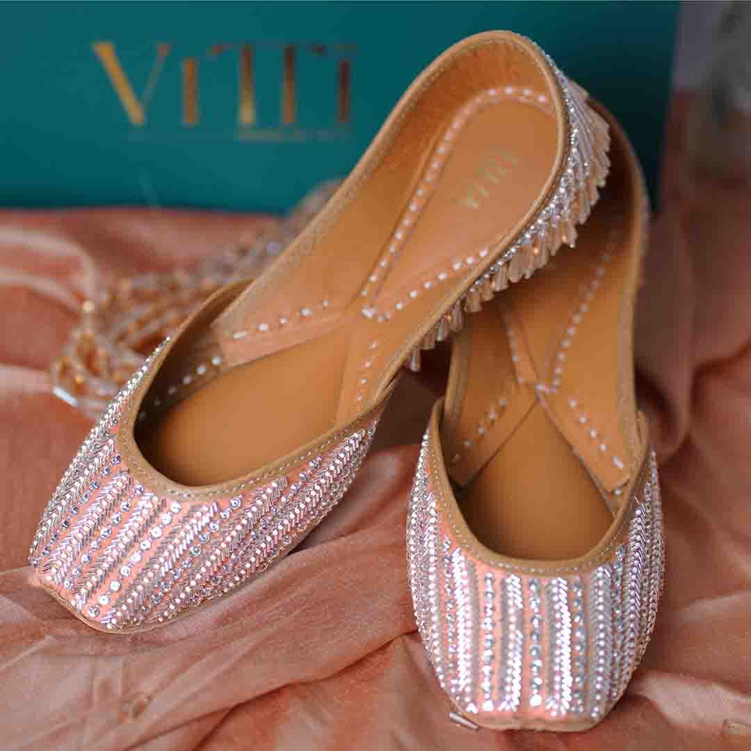 House of Vitti India redefines designer footwear for women by blending heritage with modern design. Our footwear collection features beautifully crafted designer footwear for women in both classic and contemporary styles, perfect for any occasion. Each piece reflects Indian craftsmanship, handcrafted by skilled artisans. Our designer juttis for women offer intricate detailing and comfort, while our bridal juttis add cultural elegance. We also provide versatile designer mules for women that merge tradition with modern trends. Discover the artistry and comfort of traditional footwear for women at House of Vitti India, where every pair tells a story of timeless beauty.