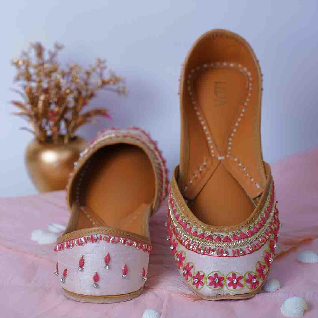 The best way to take care of your juttis is to store them in a muslin bag provided to protect them from dust and to retain their shine.We use the softest leather but to avoid shoe biting or to soften them more you may apply mustard oil.All the embellishments have been intact carefully. Some of our shoes comes with an extra pack of embellishments in case any embellishment falls off.