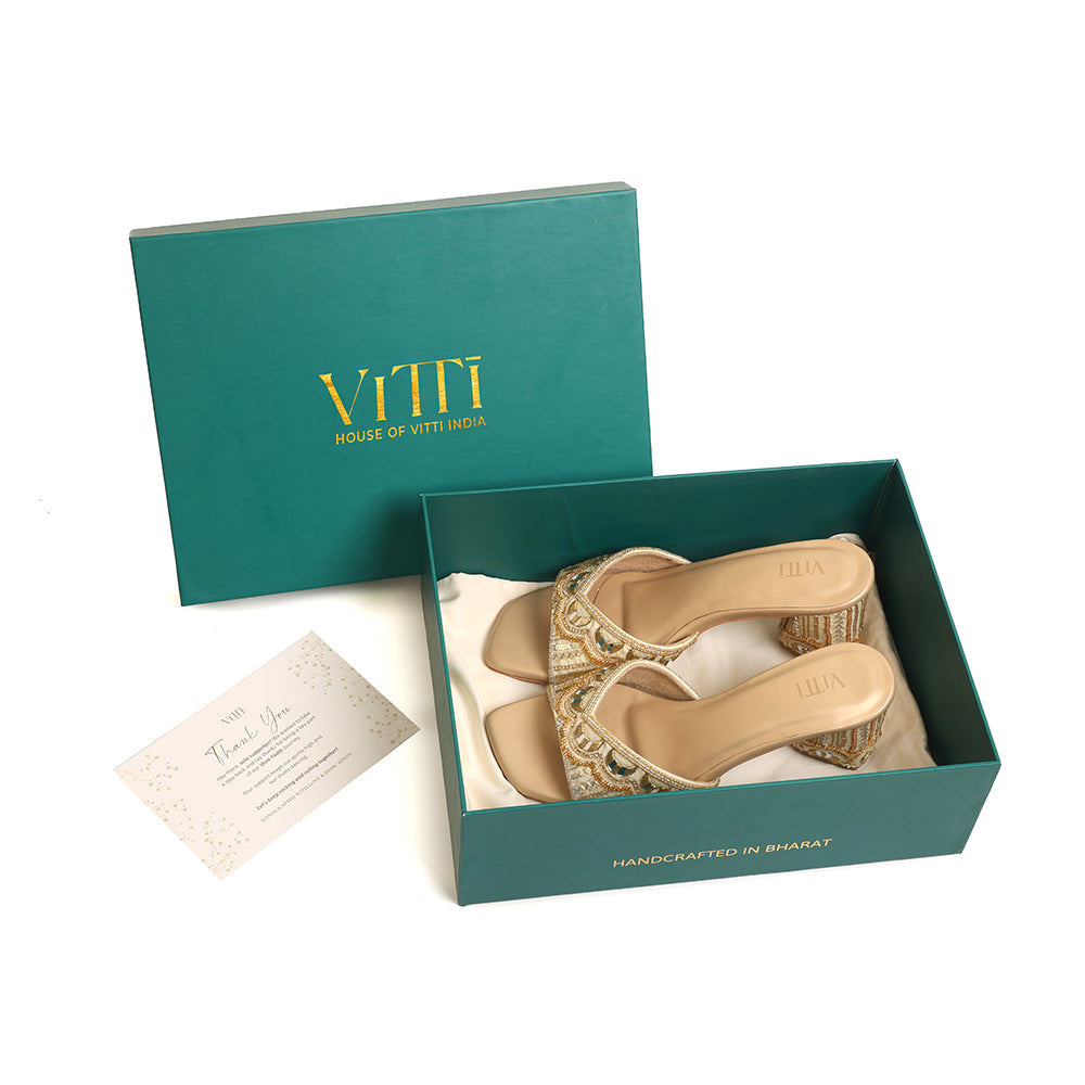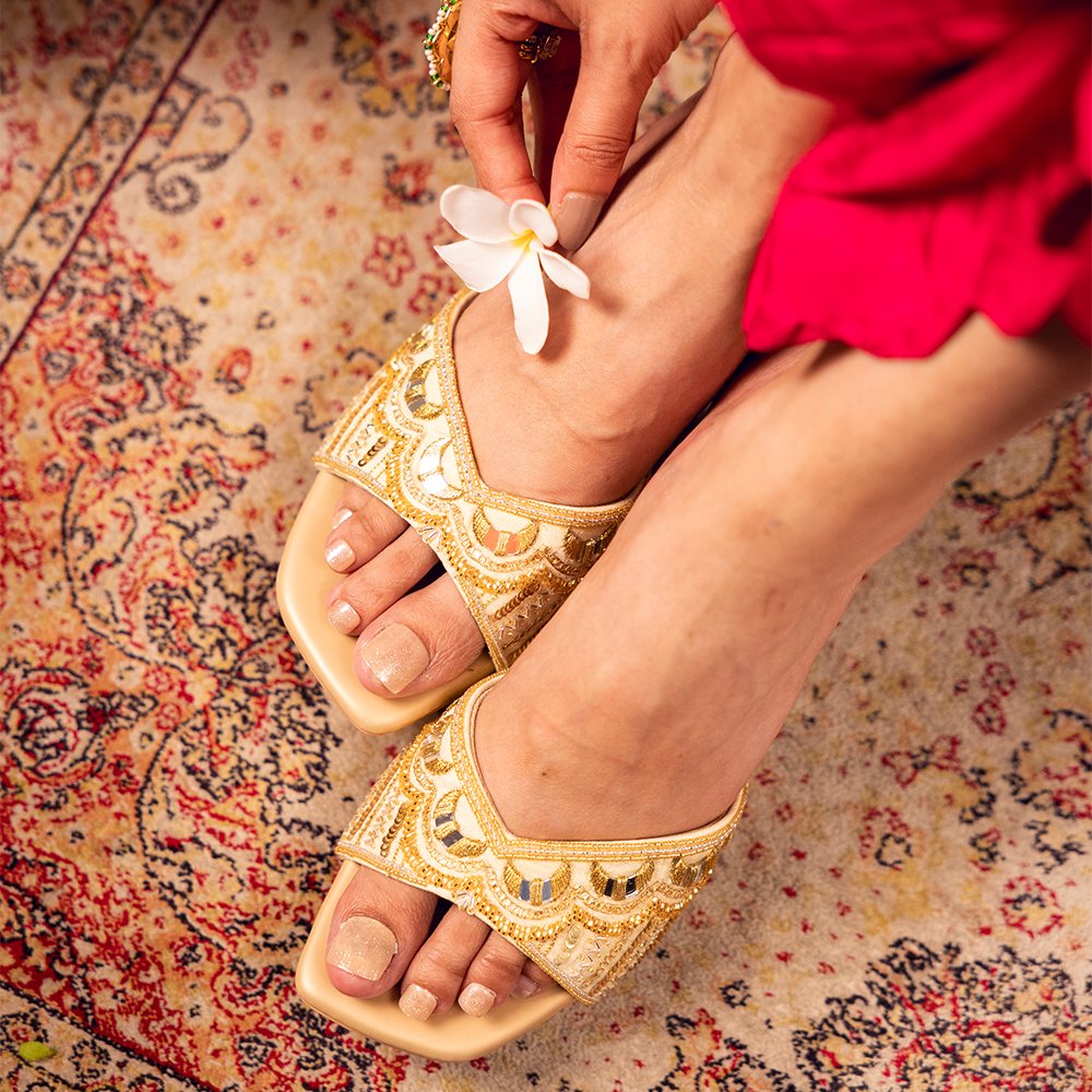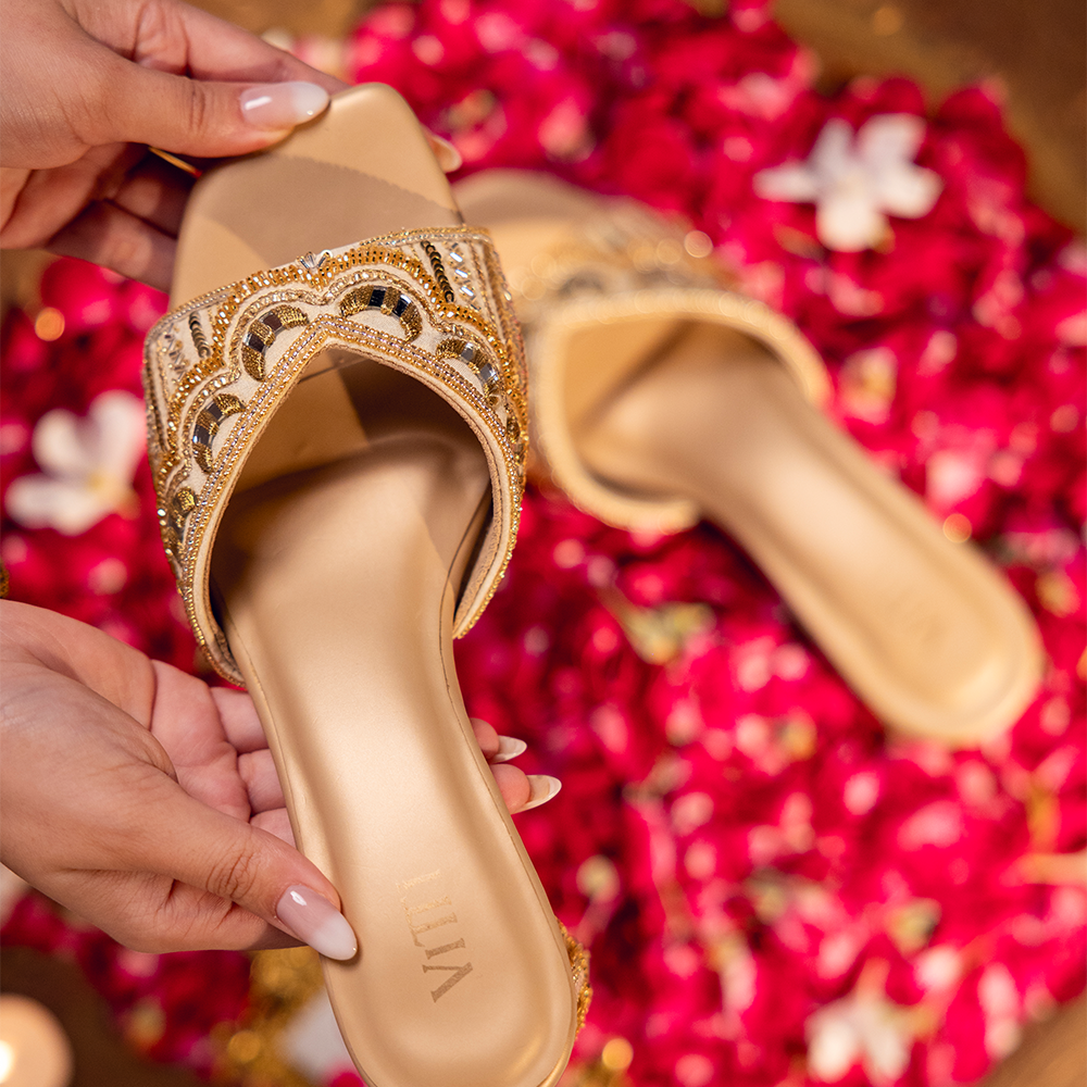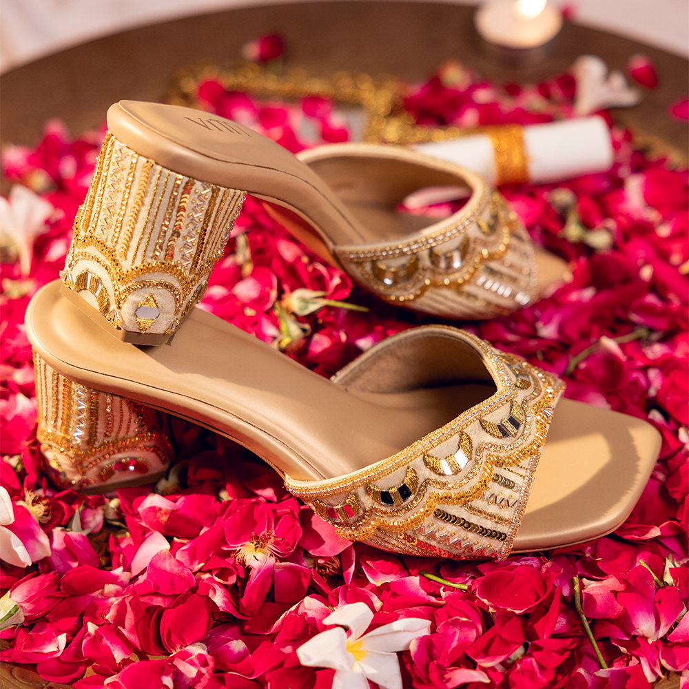 CHAAND BANNO HEELS (Mirrors and gold that glow like a bride kissed by the moon)