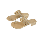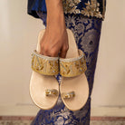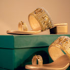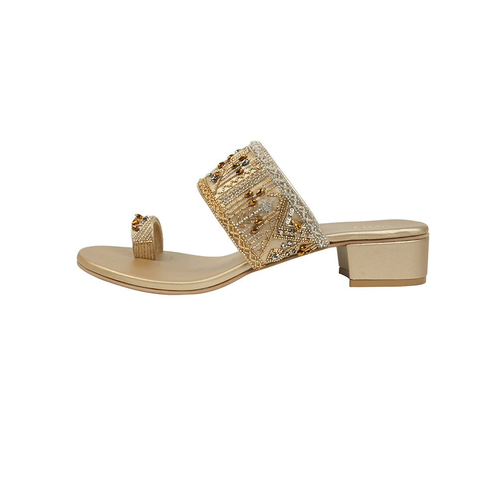 Shine bright this festive season with our Lumi Gold Heels. The dull gold base is embroidered with intricate zardozi work, featuring gold and silver beads, crystals, cutdana, and zari. These versatile heels are perfect for any occasion, adding a touch of elegance to your festive wardrobe. Pair them with traditional or modern outfits for a radiant look.